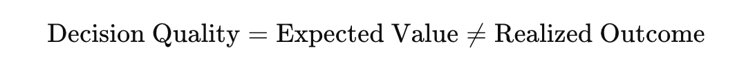 By separating EV from realized results, the framework emphasizes process over outcome — a core principle in both game theory and quantitative finance.